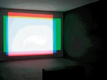 The Curious and the Talkers is a sound and light installation whose soundtrack is a discussion between a woman and a man. This exchange is punctuated by a narrator’s comments on the light and distant visions, as well as by parasitic noises from cars, birds, etc. A projection of RGB (red, green, blue) colours whose superimposition creates a white light accompanies the soundtrack. This projection without any image evokes the notion of “expanded cinema” as defined by Gene Youngblood in the 1970s: it is about pushing back the boundaries of cinema to participate in an extension of consciousness. The soundtrack of the work broadcasts the interviews between Meris Angioletti and Ingo Swann, the creator of "remote viewing", a technique for viewing at a distance. The artist interviewed him during her research on the links between light, art, and telepathy. These interviews gave rise to conversations that she tried to reconstruct before having them acted out by actors. As for the narrator, he evokes the thoughts of the musician Thomas Wilfred and the architect Claude Bragdon, founders of the Art Institute of Light in New York, an experimental space dedicated to light.