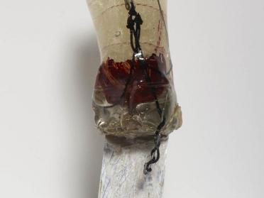 While Michaela Eichwald is primarily known for her pictorial work associated with abstract expressionism, she has also tried her hand at sculpture, with works that question artistic language and the materiality of creation. Following on from new realism and its “poetic recycling of the real”, as art critic Pierre Restany put it in 1960, she reuses unexpected elements of everyday life (such as noodles or a thermometer) in an experimental and humorous way. She invites the viewer to question the meaning of these objects, in particular through the use of resin, which is suggestive of immortality, in contrast with consumer products. This approach is reinforced by her choice of titles, which are at odds with the work they describe, like Lyrikknappschaft Auswurt (“Poetry tourist bureau”), a linguistic invention that echoes the self-deprecating uhutrust.com blog where the artist shares her daily life and her thoughts.