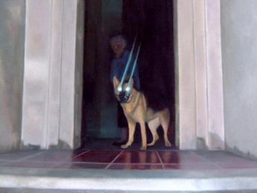 Following a trip to Poland, Audrey Nervi transcribed onto canvas a photographic flash reflected in the eyes of a muzzled guard dog. In this scene, depicted from a low-angle photograph, the viewer is confronted with a vision that leers over them. The threatening air of the dog ready to attack to defend its mistress instils a form of unease, reflecting the tensions that reign in this country faced with a rise in authoritarian movements. In 2005, the year of Nervi’s trip to Poland, the conservative party made an electoral breakthrough and came out on top in the elections, which they went on to win. In reaction to a policy devoid of meaning, Audrey Nervi symbolised the rise of public distrust of outsiders and foreigners. The word “security” in the title of the work points to the trend towards the erosion in acceptance and tolerance of the other, accentuated by the far right’s rise to power.