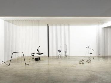 When asked about the definition of the word “polder,” Tatiana Trouvé explains: “This term contains the idea of a reclaimed space and a completely artificial space. The polder is set up where there should be nothing.” The experience proposed by the polder is therefore to extract oneself from the present space and to project oneself into a mental space, a past, an imaginary space. The polders always have a strong link with the architecture in which they are embedded. Through the use of construction pipes, Tatiana Trouvé tends to show what is usually camouflaged and thus to produce what she calls “X-rays of architecture,” seeking to capture the soul and interiority of buildings. With its impossible weight machines that cannot function, Polder seems to be modelled on the gym, while others are drawn from offices or music rooms. A hybrid space, it is too big to be a model, but too small to be usable, causing the viewer to feel permanently out of step with the strange environment they enter.