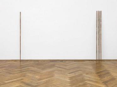 Five metal bars 180 centimetres long are placed against a white wall. The minimalist and pure aspect of this work contrasts with its title. The “piled bodies” here evoke the massacres perpetrated by Belgian colonists in the nineteenth century to take control of the copper mines in Katanga (Democratic Republic of Congo). These same mines were at the heart of the 1960 civil war in the same region. The metal bars were obtained by transforming small copper crosses that were once used as currency in Katanga. The melting of these crosses, a gesture imbued with a strong symbolic power, echoes the violence of European colonization. Mathieu Kleyebe Abonnenc aims to “unshackle the gaze” of the audience and to bring them to consider the full measure of the reality of colonization and above all of its consequences. The artist reminds us here that copper, as a material, cannot be perceived in a neutral way as its history is marked by a violence still contained in the exposed metal rods.