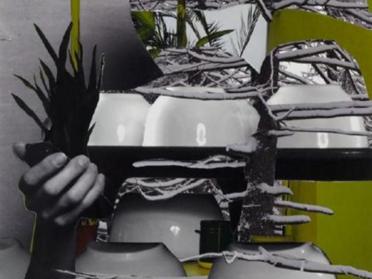 Made from several photographs, this large collage blurs the boundaries between inside and outside, between plants, humans, and technology. Several images are combined and superimposed: a female figure with a hollowed-out face holding a green plant, a radiator, a window, snow-covered tree branches, and kitchen utensils. Together they form an enigmatic ensemble which, as the title suggests, invokes the idea of a secret, a confession whose meaning must be elucidated by adding visual signs. Anna Parkina’s images function like puzzles. While evoking Russian constructivism and Soviet propaganda, her collages create a layered and equivocal surface that recalls the unreal constructions and impossible perspectives of the Dutch draughtsman M.C. Escher, who was greatly inspired by architecture and mathematics, as well as the trompe l’oeil work of René Magritte.