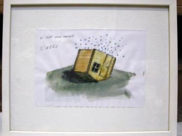 L'abri / Le vent nous portera is a watercolour done by Pierre Ardouvin in 2004. It was used as a sketch to prepare his installation L'abri (le vent nous portera). Drawing is an essential practice for the artist’s production, whether for the study of a project or as a work in itself. “For me, drawing is a way to initially record ideas, to visualise projects,” he explains. “It can go far beyond project drawing, research drawing, to a more automatic form of drawing.” The drawing’s subtitle is the title of a song by the band Noir Désir. Pierre Ardouvin frequently associates popular music with his work. This song evokes the passage of time, against which the shelter could offer a refuge, from which the bubbles of a timeless childhood are always escaping. Nostalgia, a central theme in the artist’s work, is tinged with melancholy in the face of this shelter, which we are unsure is solid enough to not be blown away by the wind.