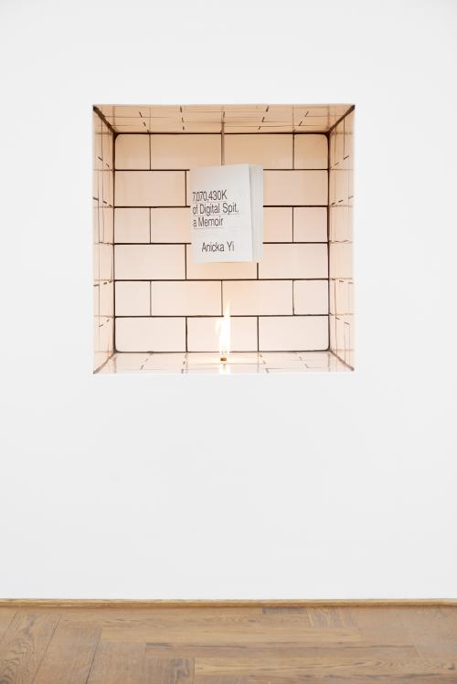 Deep-fried flowers, expired powdered milk, snail mucus and the scent of forgetting: Anicka Yi’s oeuvre reveals her predilection for the fleeting and the perishable. After developing a fragrance related to memory loss with the perfume designer Barnabé Fillion, Anicka Yi applied it to the pages of her first monograph. Her research into the olfactive transcription of memory loss then took form in The Last Diamond. Two aromas emanate from the two partially-open dryer doors that make up the installation. Through this intermingling of scents, the artist wishes to create an alchemy that smells of amnesia. The Last Diamond bears witness to the artist interest in experiments that are at once chemical and techno-sensual, with a heightened psychological value.