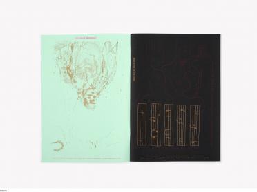 Each workshop resulted in the printing of a "journal" produced and printed on site within twenty-four hours of the workshop. The book, composed of these four issues, is completed with original engravings made from images by several artists invited by Katinka Bock. The sheets, in different formats, are based on the formats of international newspapers in reference to the initial activity of the Anzeiger-Hochhaus in Hanover. This emblematic publishing house saw the birth of such important periodicals as Der Stern and Der Spiegel in its basement.
