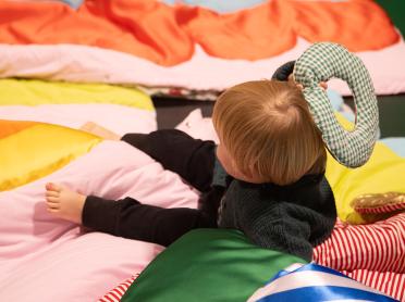 Toddlers and their parents are invited to play with a colourful wardrobe unlike any other, designed by textile designer Justine Decarsin in collaboration with the Centre Pompidou.