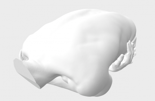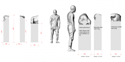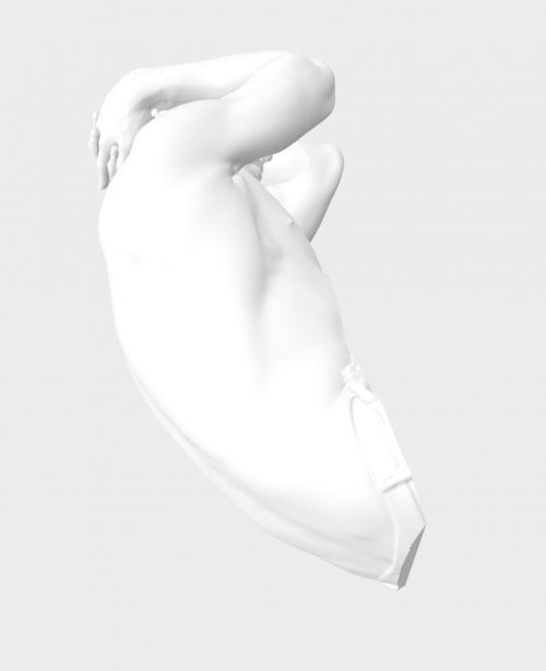 Historically, the nude refers to a vision of physical and psychological excellence that the Greeks represented through muscular and powerful men of heroic or divine status. In Martin Margiela’s work, this masculinity disrupts the scale: he sculpts a being with mutant forms and an unidentifiable body that looks more like a collage. The sculptures are attached to their plinths and trimmed to line up with the same dimensions. Traces of wear and tear appear at the bottom of the plinths: the work as a whole suggests the end of an ideal, that of a certain masculinity on the one hand, and the authority and distance of the works on the other.