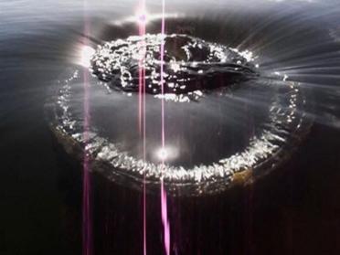 On ne reconnaît pas tout de suite l’eau en s’approchant de la matière noire donnée à voir par Black Hole, mais c’est pourtant son écoulement sans fin qui fait l’objet de la vidéo. Invitation à porter un nouveau regard sur cet élément connu de tous, l’œuvre joue avec notre perception à travers le choix des couleurs, des formes et du cadrage. L’artiste propose un temps de prise de conscience dans une nouvelle rencontre avec la banalité du sujet qu’il choisit. Le fait de sortir du simple rapport d’usage permet de se concentrer sur les propriétés physiques de l’eau. Éric Baudart décline cette pratique en nous montrant d’autres facettes de la matière dans ses sculptures en résine (série Cryst) qui feignent l’eau figée. À l’inverse de ce « trou noir », c’est en toute transparence que le rythme incessant du mouvement de l’eau y est interrompu pour mieux révéler une autre dimension du comportement de la matière.