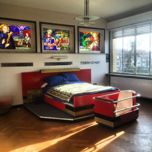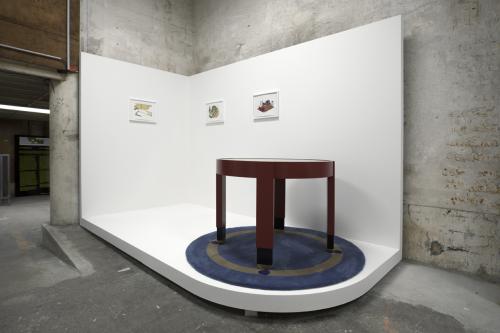 De Ooievaar (Villa Stork) est un édifice moderniste construit en 1935, à Ostende, par l’architecte et designer belge Jozef De Bruycker. Inspiré par le mouvement De Stijl et le Bauhaus, De Bruycker a pris part à l’avant-garde flamande qui a opéré la synthèse entre idéologies nationale, politique et artistique. En 2014, Lucy McKenzie est devenue propriétaire de la villa, où elle a engagé un projet de réhabilitation en collaboration avec des artisans belges : le designer Frederik Depuydt a contribué à la réalisation d’une maquette 3D de l’édifice, l’ébéniste Laurent Gielis à celle d’une table et de répliques de chaises, et l’entreprise Ora Pro Nobis à celle d’un tapis. Tout en respectant les matériaux et le design originels de la maison et du mobilier, Lucy McKenzie a instillé dans ces rénovations de subtiles modifications, faisant de De Ooievaar une demeure appropriée par une artiste.