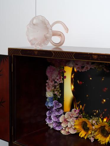 Son installation s’inspire de théories géologiques et biochimiques de l'anthropocène - notion selon laquelle l'impact humain sur les systèmes terrestres est entré dans une nouvelle ère - un point de non-retour menant inévitablement à la fin du monde tel que nous le connaissons.
