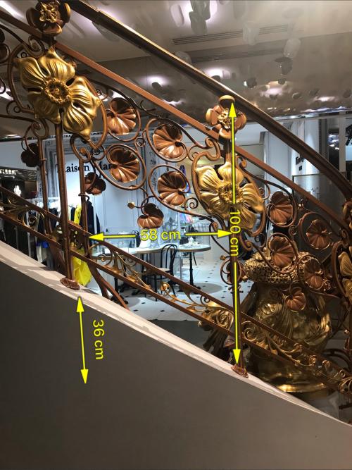 Mesures de l'escalier restant aux Galeries Lafayette