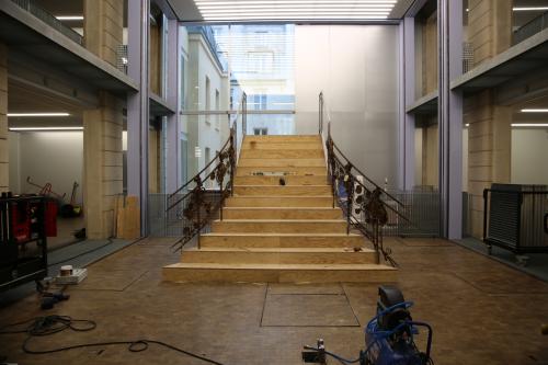 Installation de l'escalier à son emplacement définitif