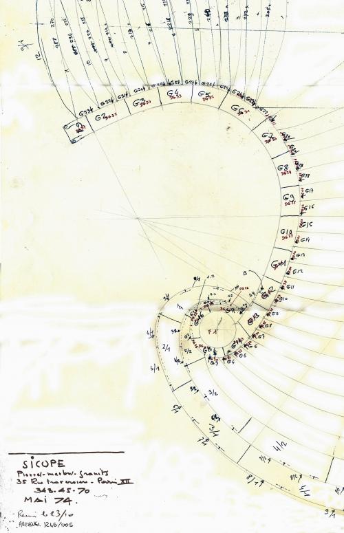 Archives des Galeries Lafayette, J246/005, plans et croquis de l'entreprise Sicope, Paris, mai 1974.